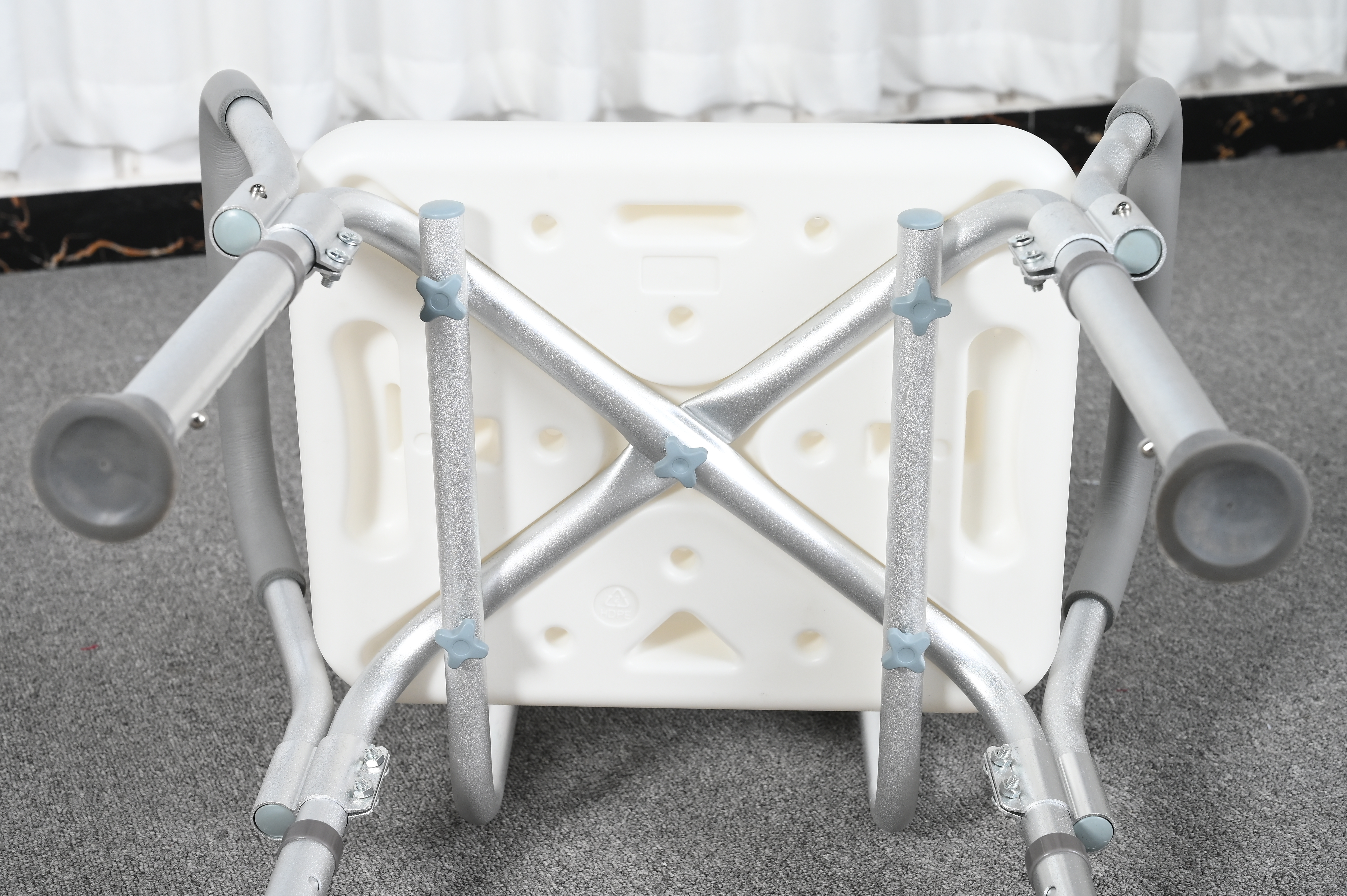 Lightweight & Durable Construction: The chair’s frame is made of premium aluminium alloy, ensuring robust load-bearing capacity while remaining lightweight (3.5kg net weight) for easy movement and handling by users or caregivers. The plastic seat board is wear-resistant, waterproof, and easy to clean, making it perfect for humid shower environments.